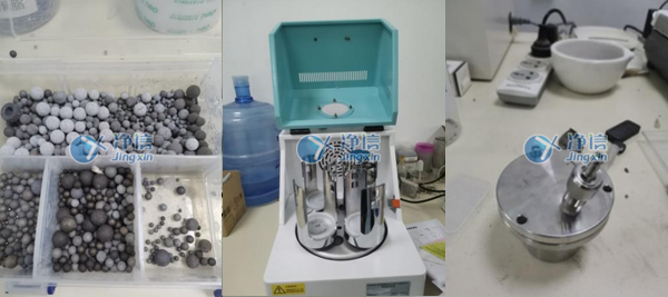 1、準備行星式球磨機JX-2G一臺、研磨罐1套、混合不銹鋼研磨珠以及所需橄欖巖樣品少許;